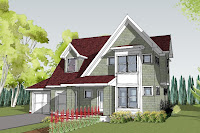 The client loved the design inside and out. But the plan would not fit on their own lot configuration, the room arrangement did not satisfy 100% of their needs and their aesthetic tastes tended more towards the contemporary. So Ron Brenner Architects sold the plan to them for a flat fee, and then worked on an hourly rate basis to modify the plan to reflect their needs. The images below reflect the modified design.